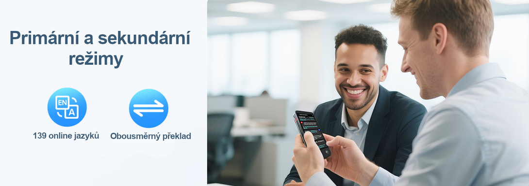 Zahrnuje přepis hlasu na text (až 60 sekund), překlad skupinového chatu pomocí skenování QR kódu, režim skupiny pro více zařízení pro vzdálené vícejazyčné schůzky a inteligentní nahrávání s automatickým překladem a ukládáním – ideální pro přednášky nebo obchodní jednání.